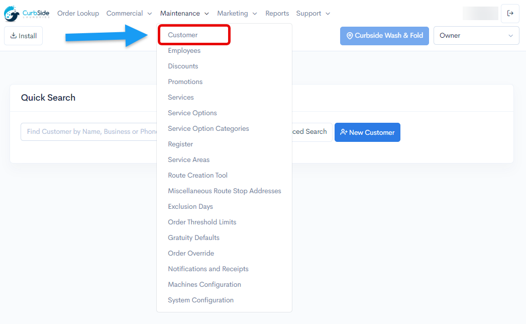 Use the search bar to find the specific customer you want to archive. You can search by name, phone number, or email address.